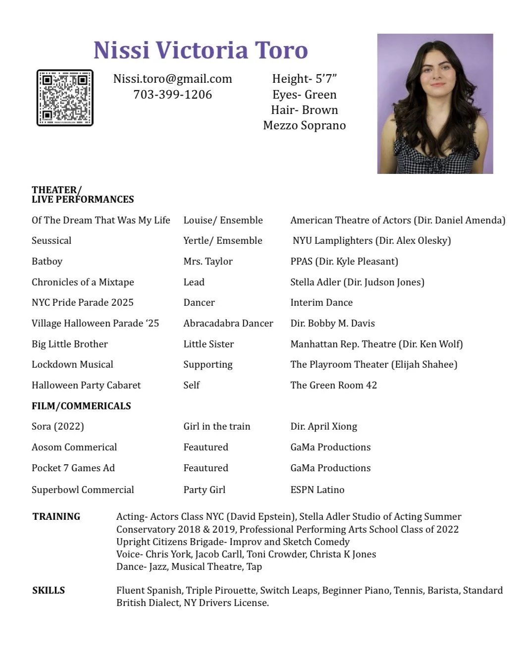 Nissi Victoria Toro is a NYC based actor/ singer/ dancer/ funny person/ coffee drinker and maker/ gluten intolerant
